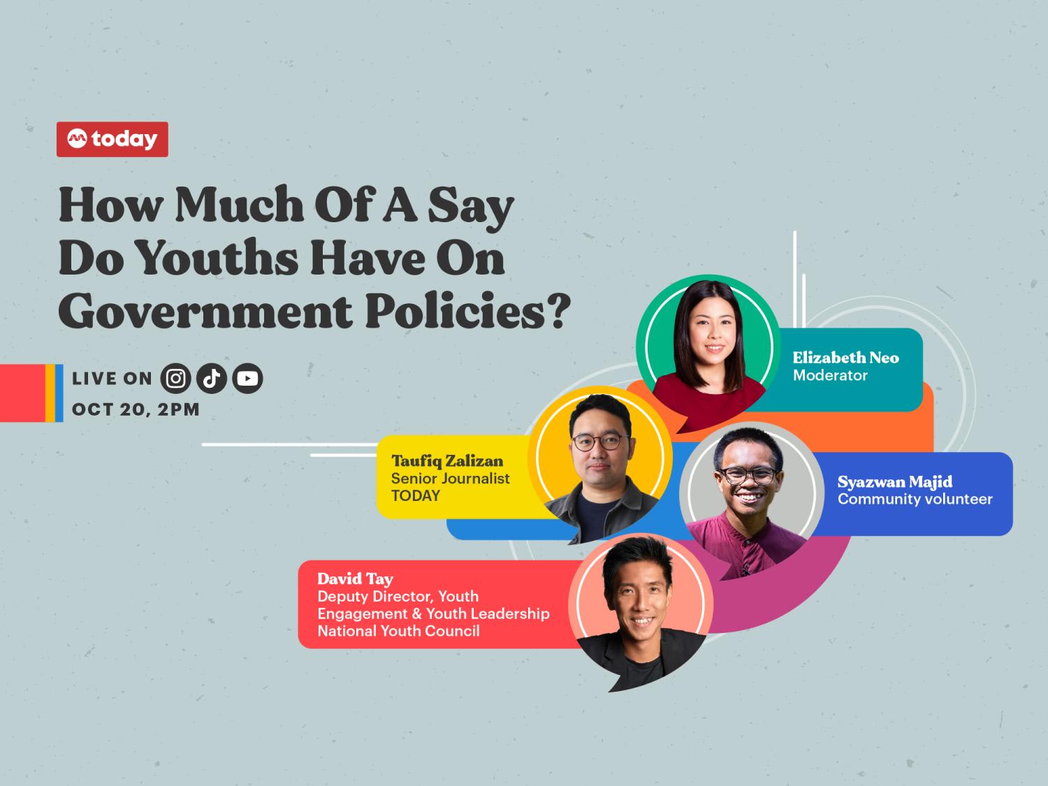 Join our host Elizabeth Neo and her guests on Oct 19 and 20 as they discuss education, career prospects and civic participation.