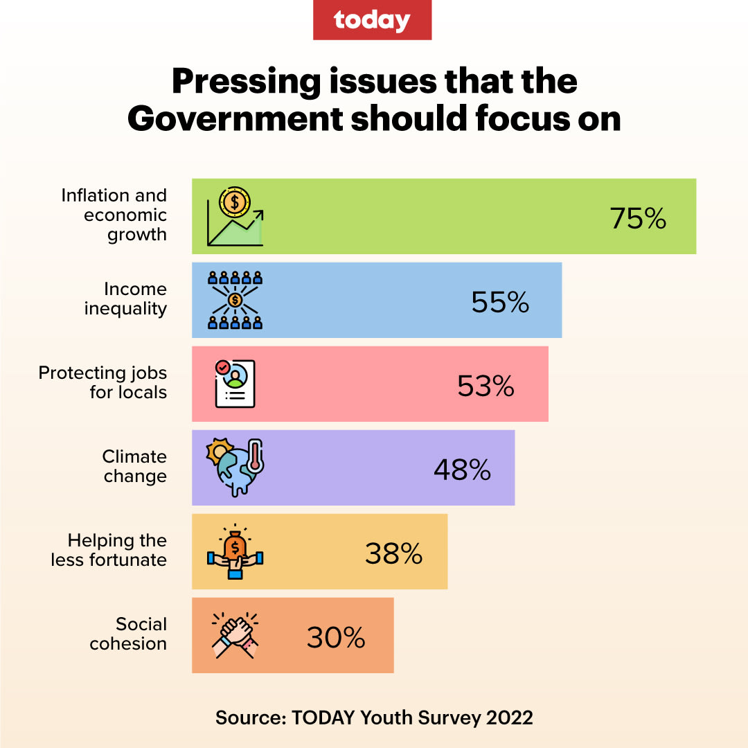 Mr Ching from Access Singapore said he was not surprised that inflation and economic growth came out tops despite the common perception that young people are less concerned about bread-and-butter issues.