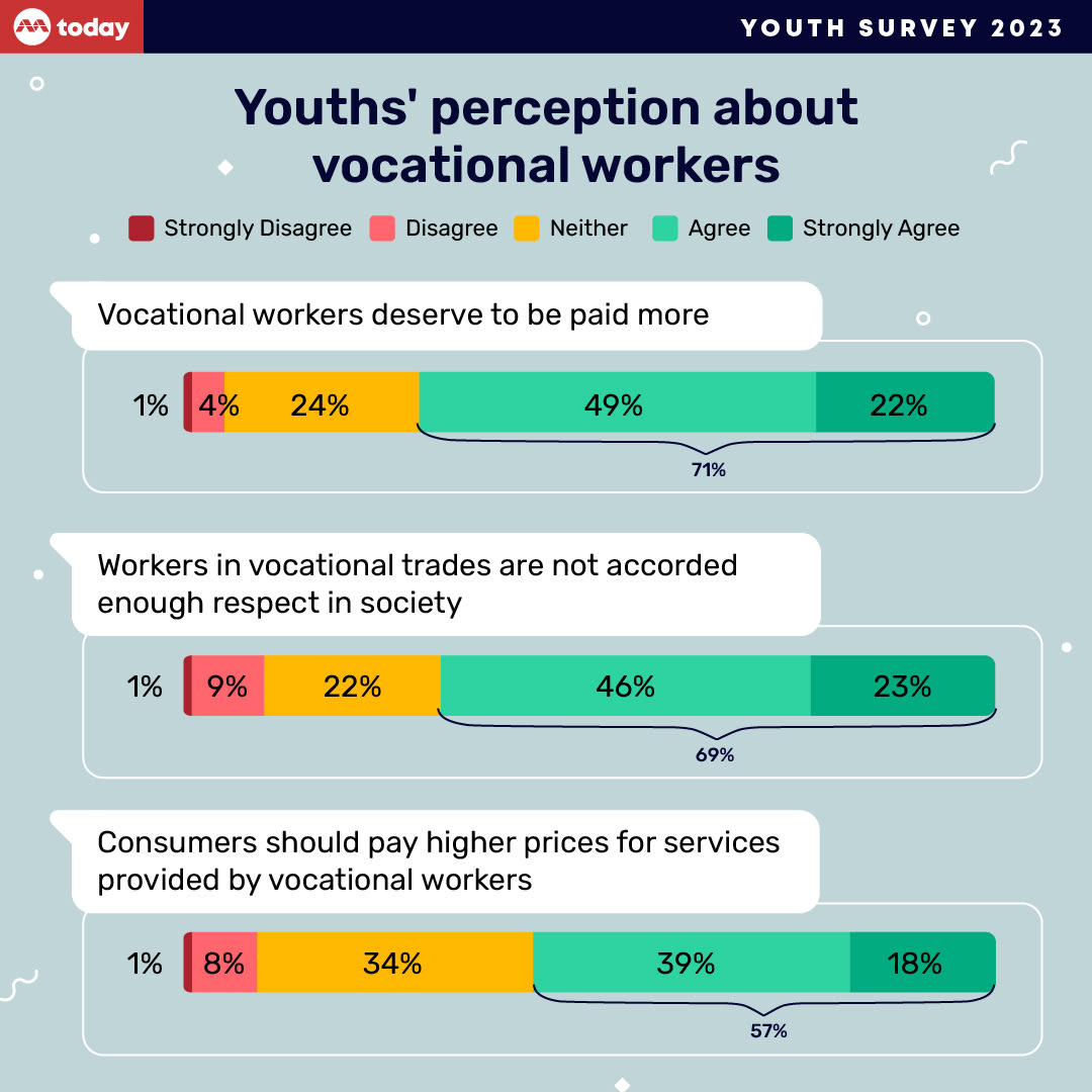 Indeed, results from TODAY’s youth survey found that almost seven in 10, or 69 per cent, of youths believed workers in vocational trades are not accorded enough respect in society.