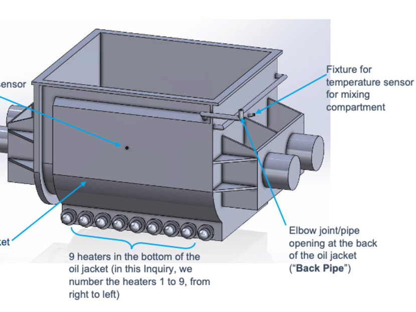 After the explosion, the bulk of the damage to the mixer machine was at the lower portion of the back of its oil jacket, which had ruptured.