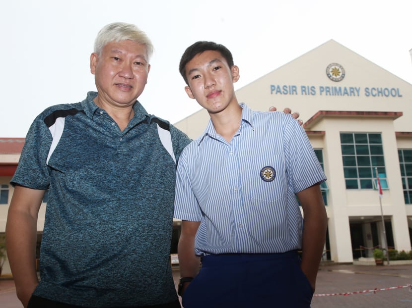 Michael Wong Hsi Wah (right) with his father Toni Wong Kwan Ying in a photo taken when the Primary School Leaving Examination results were released on Nov 24, 2021.