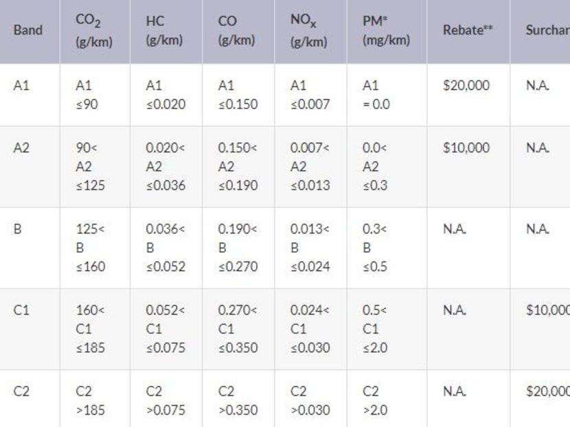 LTA’s One Motoring site stated that cars or taxis that are bought under VES bands A1 and A2 are given a rebate of S$20,000 and S$10,000 respectively.