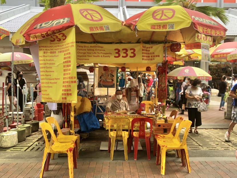 Fengshui master Alex Soh, 58, said that he is not concerned about the charges for rent, but the new allotted space may not be enough to fit the table he uses, which is already covered fully with fortune-telling instruments.