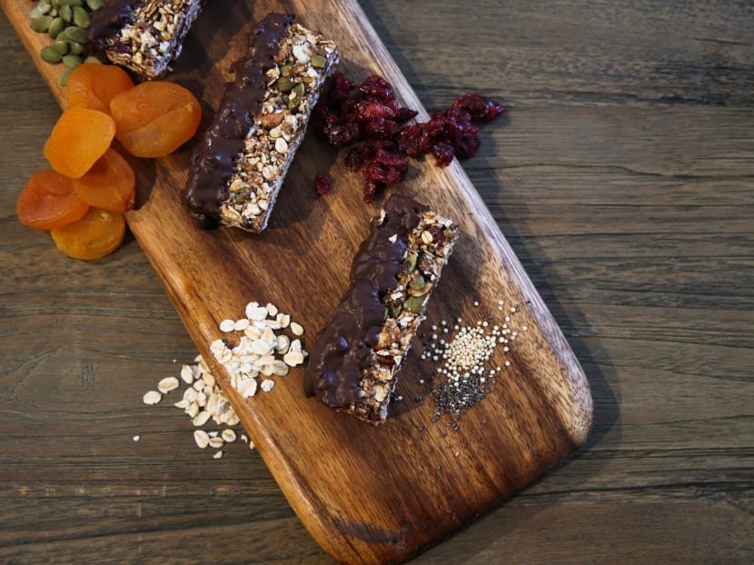 The tuna pasta is priced at S$22, the rice pudding at S$6, and the granola bar costs S$5.