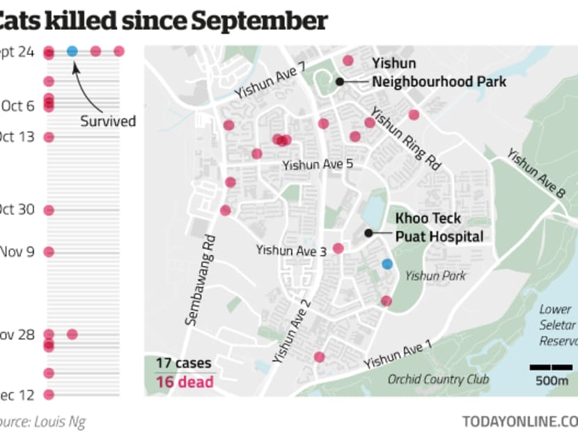 Since Sept 24 this year, there have been 17 reported cases of cat abuse there. Only one — the first victim — survived an attack after it was found in Northland Primary School at Yishun Avenue 4.