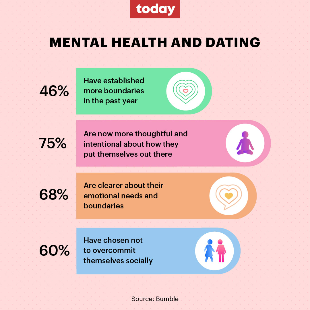 - Surveys by dating platforms Bumble, Tinder and Lunch Actually found that young singles are prioritising their mental health and boundaries more when it comes to dating