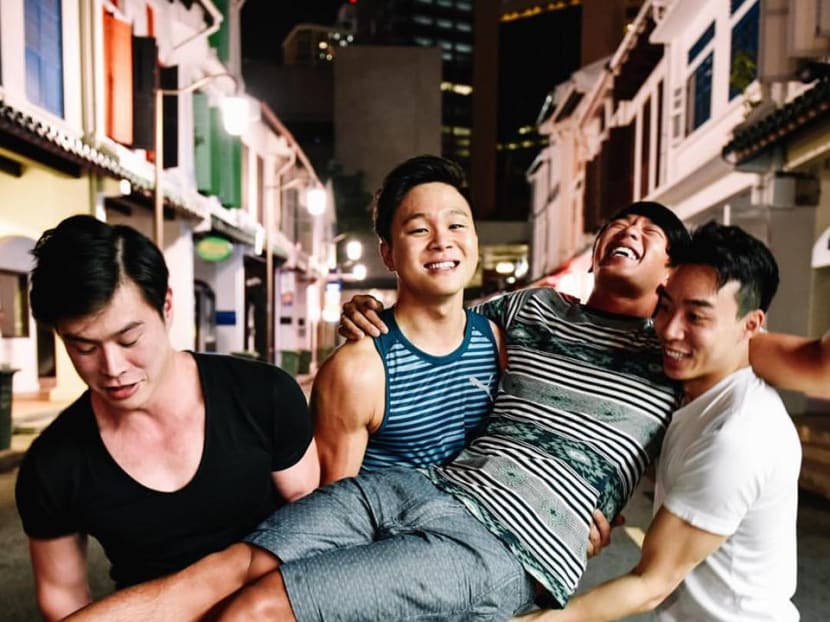 Pang Sheng Jun (second from left) with good friends and past and present national swim mates Russell Ong (left), Clement Lim and Joel Tan. Photo: Pang Sheng Jun's Facebook page.