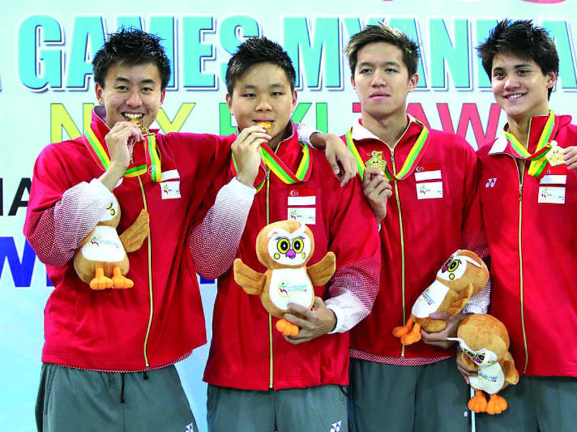 Even as his family and friends rallied around him, Pang admitted that his demons – depression – never really went away, until he won gold with the men’s 4x200m freestyle team at the Myanmar SEA Games in 2013 (above. Photo: TODAY file photo)