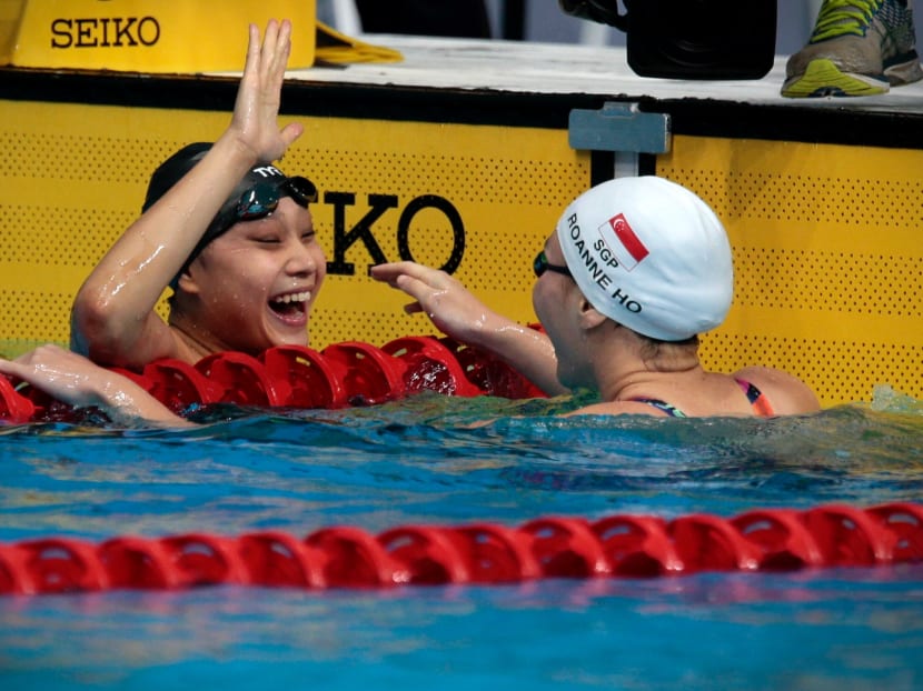 Roanne Ho celebrates winning the women's 50m Breaststroke title. Photo: Jason Quah/TODAY