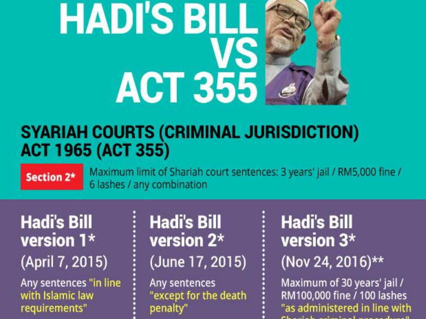 Known as “Hadi’s Bill” after its chief proponent, it is also nicknamed “RUU355”, as it is aimed at amending the Syariah Courts (Criminal Jurisdiction) Act 1965, or Act 355.