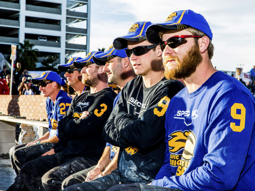 Two-person teams compete in the Bricklayer 500 championship outside the Las Vegas Convention Center in Nevada. Photo: The New York Times