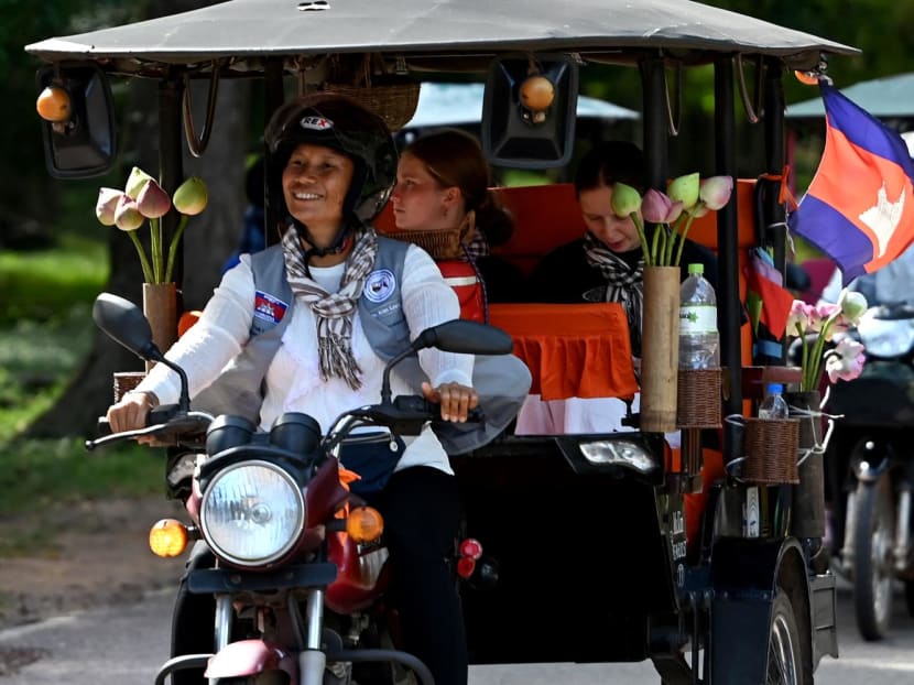 She got her start after borrowing US$3,000 (S$4,000) to buy her tuk-tuk, and has now been driving through the shaded roads of Angkor Park for more than three years.