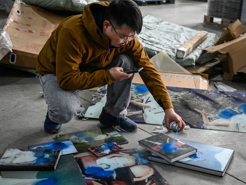 Brandishing his phone, Mr Liu films the defaced photos and sends clips to customers for final confirmation.
