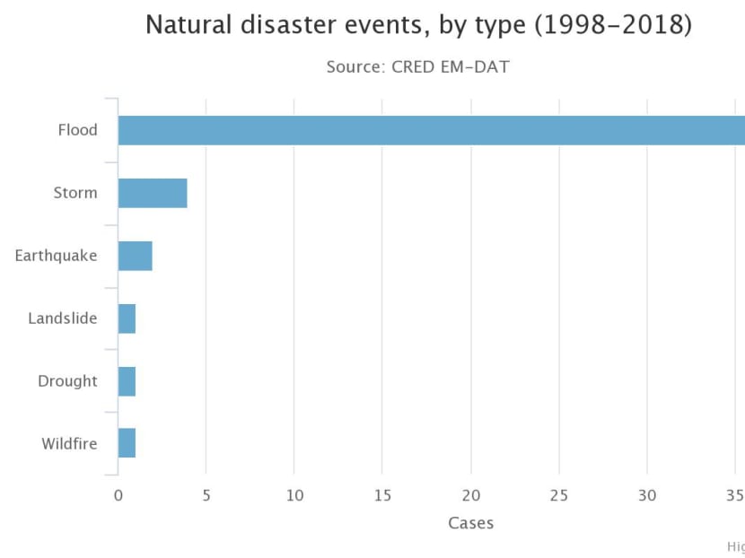 Most of the carnage in Malaysia has been caused by floods, making up 38 out of the total 51 natural disasters in that period, or roughly three-quarters — considerably more than the global average of over 43 per cent.