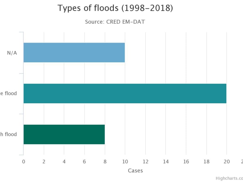 Out of the 38 occurrences of floods in that period, 20 of them happened at rivers compared to just eight cases of flash floods.