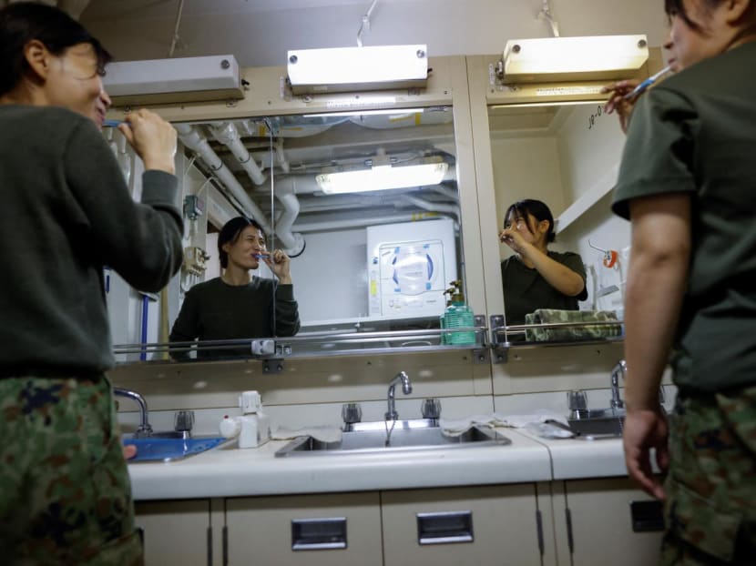 Living alongside a close-knit group of other female service members aboard the JS Osumi, a Japanese Maritime Self-Defence Force tank landing ship deployed for exercises in the East China Sea, they in November supported beach assault drills in Japan's vulnerable southwest island chain.