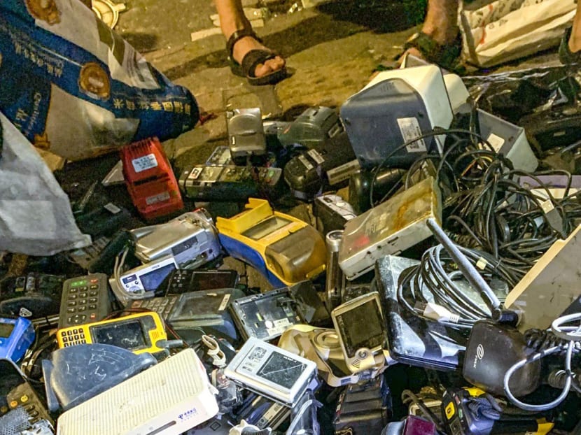 We spotted what looked like a first-generation iPhone and an old Nintendo console. We were digging through the piles of electronics when it occurred to us that they might be picked out of rubbish dumps or other unsavoury places. We went to an all-night convenience store and bought hand sanitiser.