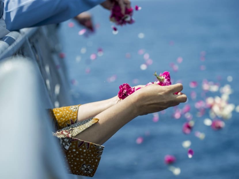 On Friday, victims' families cast flower petals from a navy ship into waters where the sub went down as part of a remembrance ceremony.