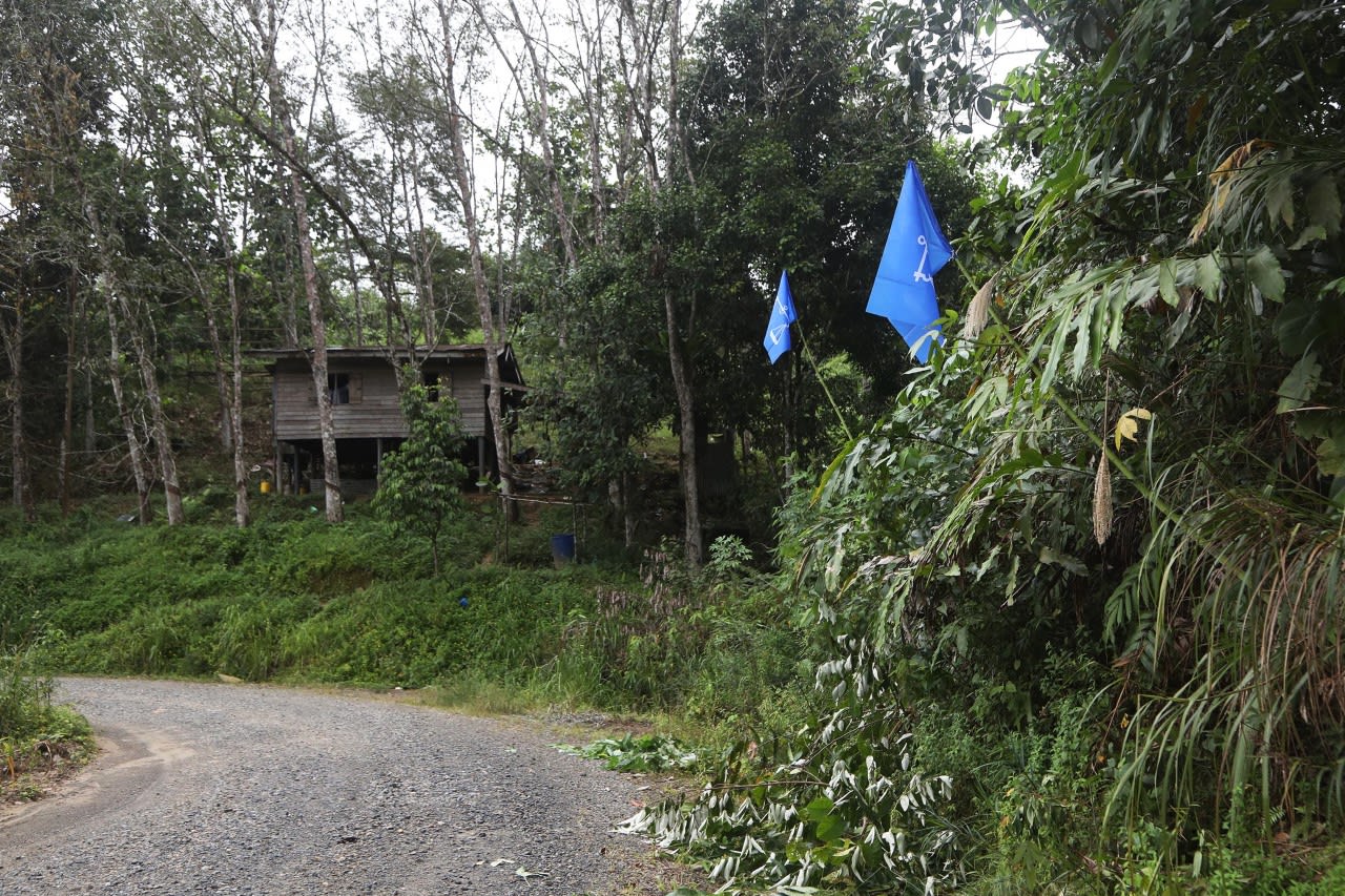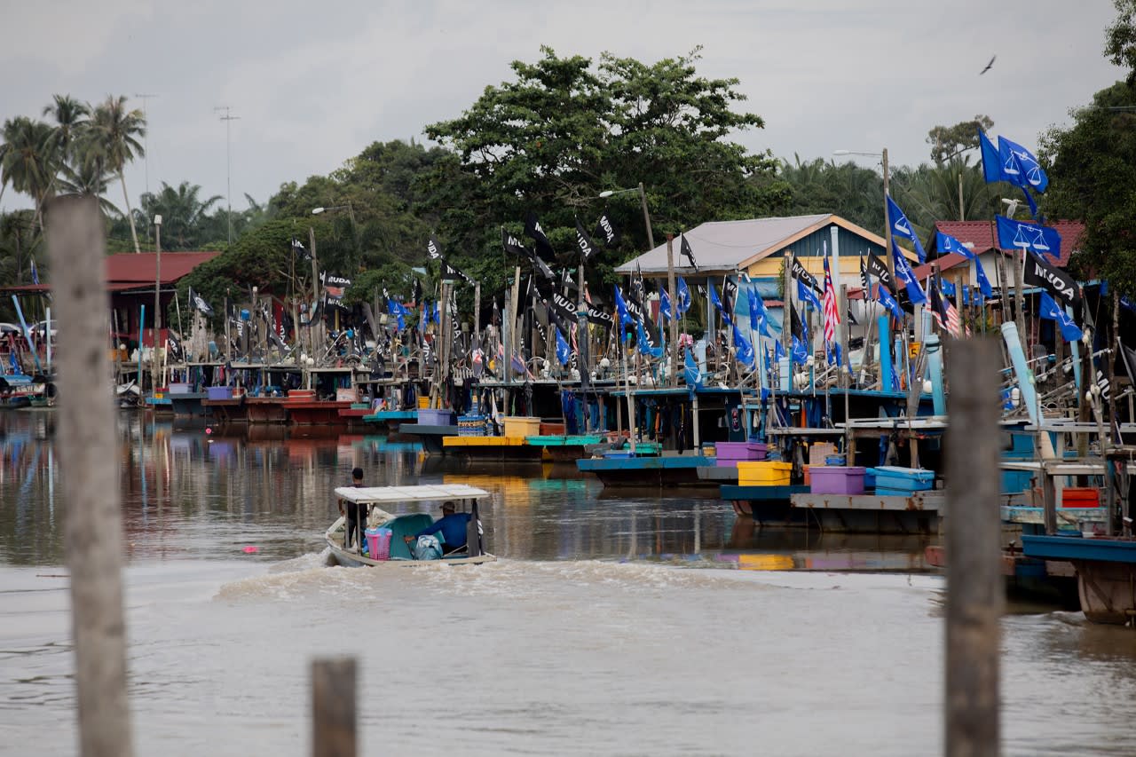 Party flags seen in a village in the constituency of Kota Belud, north-east of Sabah's capital of Kota Kinabalu on Nov 9, 2022.
