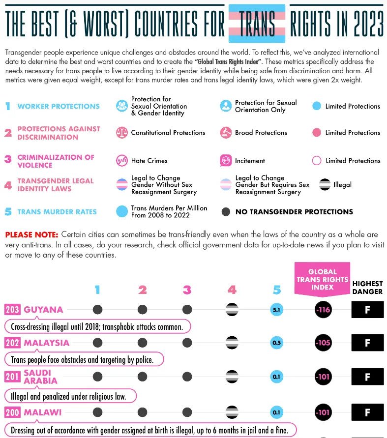 “Malaysia, Saudi Arabia, Malawi, and the United Arab Emirates are the subsequent worst countries for trans people.