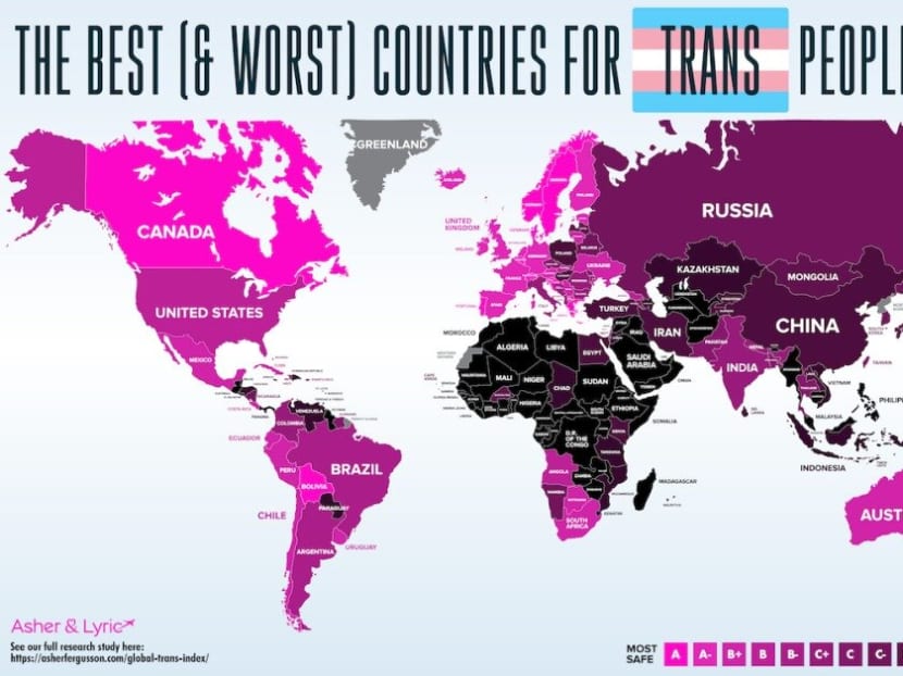 Malaysia was given a score of -105 and the highest danger rating of F, with a statement that transgender people face obstacles in the country and are targeted by the police, said researcher couple Asher and Lyric Fergusson in the study published on their travel site.