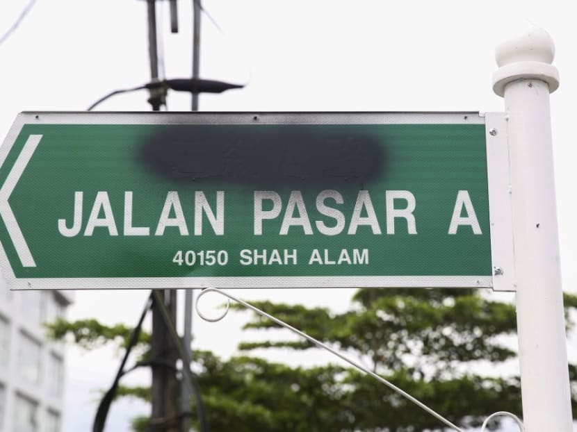 The Chinese characters on a road sign in Shah Alam were sprayed over with black paint. Photo: Malay Mail