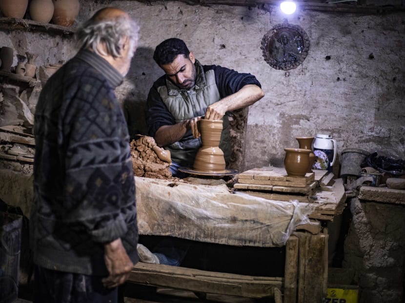 QAMISHLI — Inside a dusty and dark workshop on the banks of the Jaghjagh river in northeast Syria, Mr Misak Antranik Petros uses an ancient pottery wheel to throw different shapes from clay.