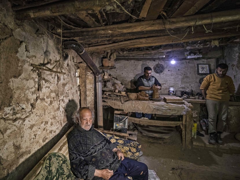 Syrian-Armenian potter Misak Antranik Petros uses an ancient pottery wheel to churn different types of pots at his workshop located inside an ancient mud-brick house near the city of Qamishli in Syria's northeastern Hasakeh province on Dec 19, 2020.