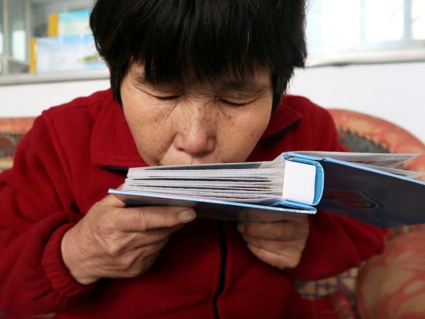 Ms Liu Shuangfeng kisses an album with pictures of her son, who was on board missing Flight MH370, at her house in Handan, Hebei province, China, on March 1, 2019. Photo: Reuters